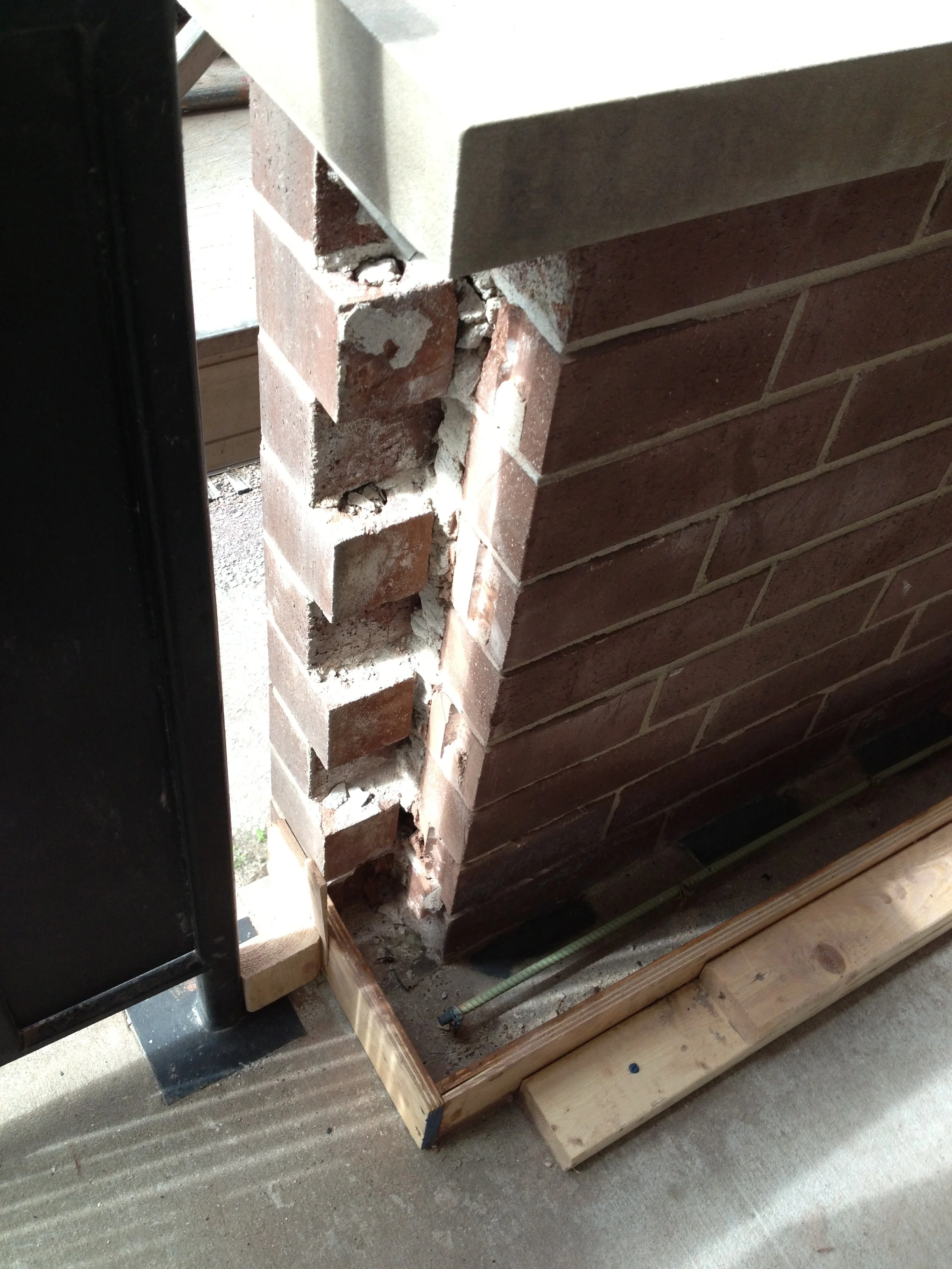 Installation of an additional wythe of brick with cavity reinforcement at typical balcony half walls